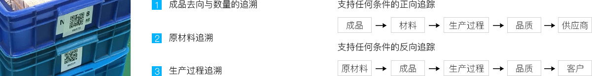 • 实时、高效、准确地跟踪产品,在每道工序及每个质检环节的全过程,使企业具备更完善、更有竞争力的生产过程和品质管理能力。